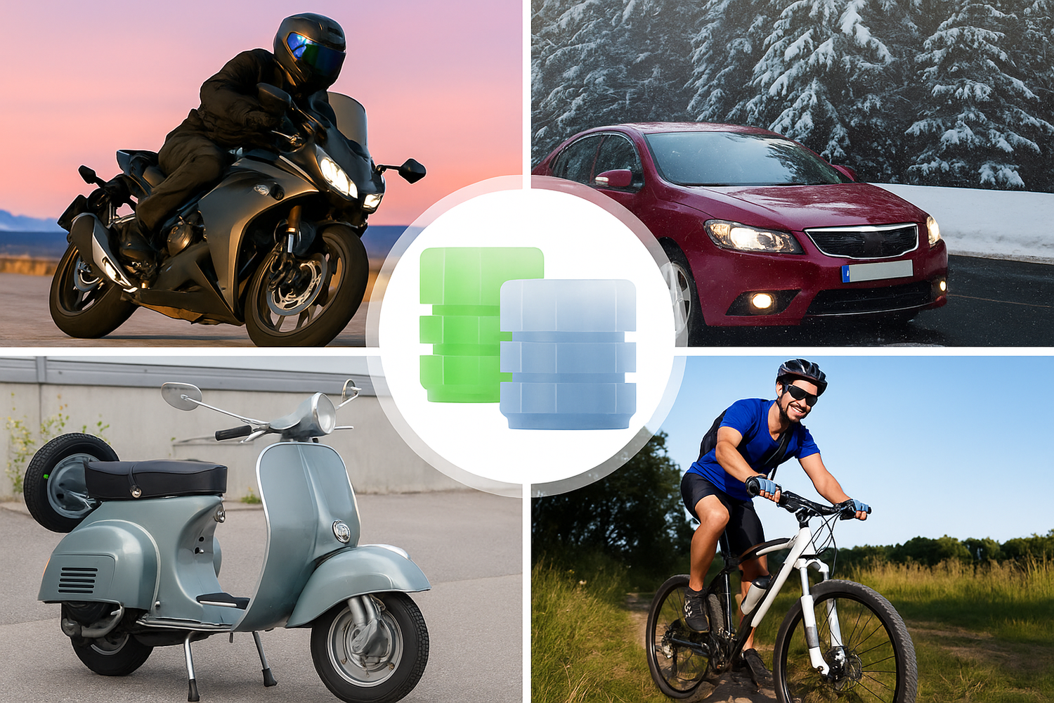 - 🔄 Sirven para carros, motos y scooters con válvulas estándar.