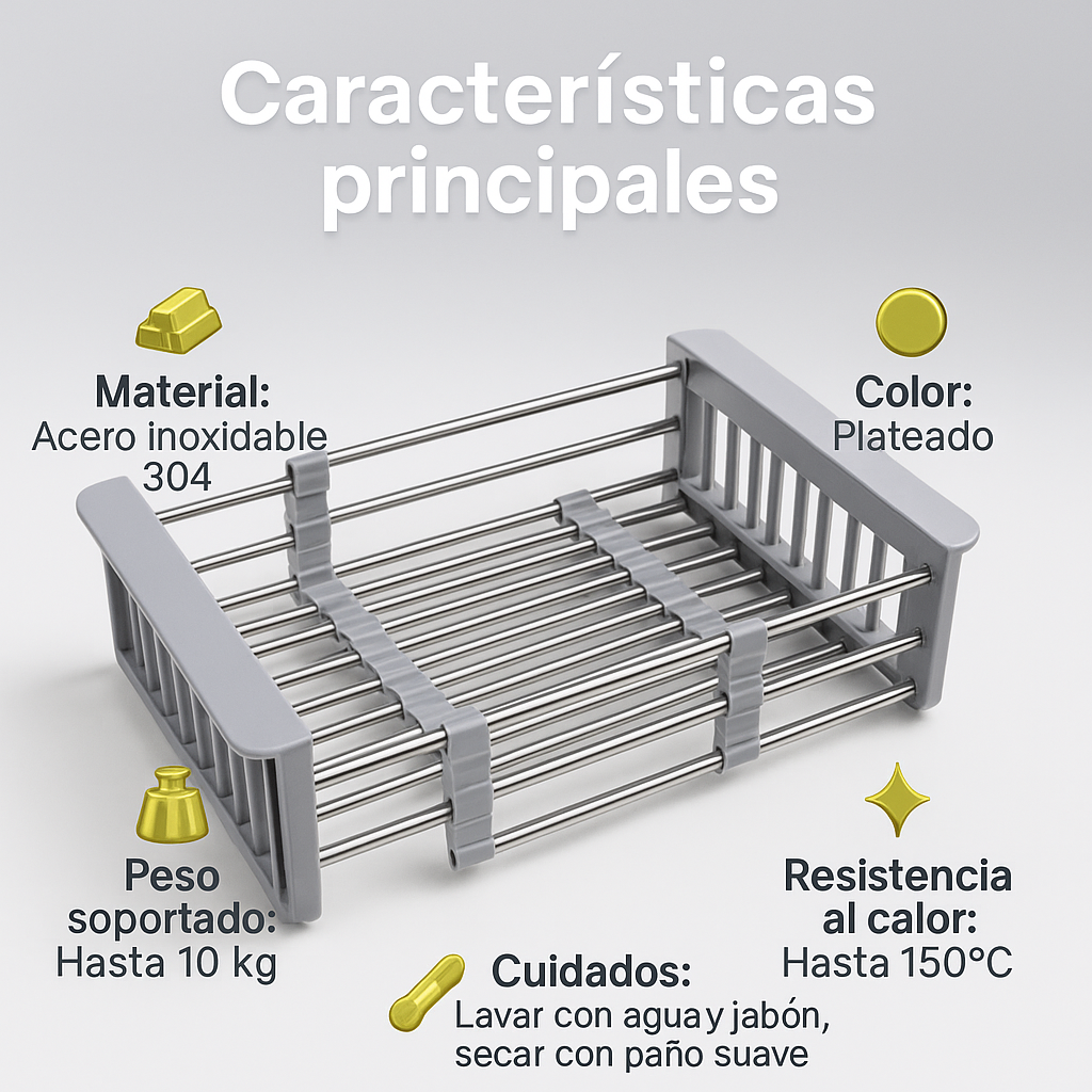 - 🔄 Diseño retráctil que se ajusta a cualquier tamaño de fregadero.